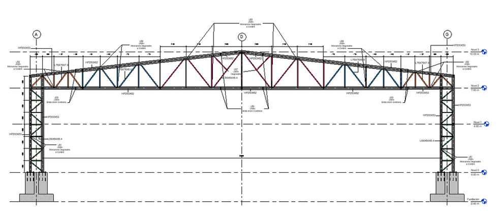 Proyecto estructural de nave industrial reticulada de 2500 metros cuadrados de superficie.